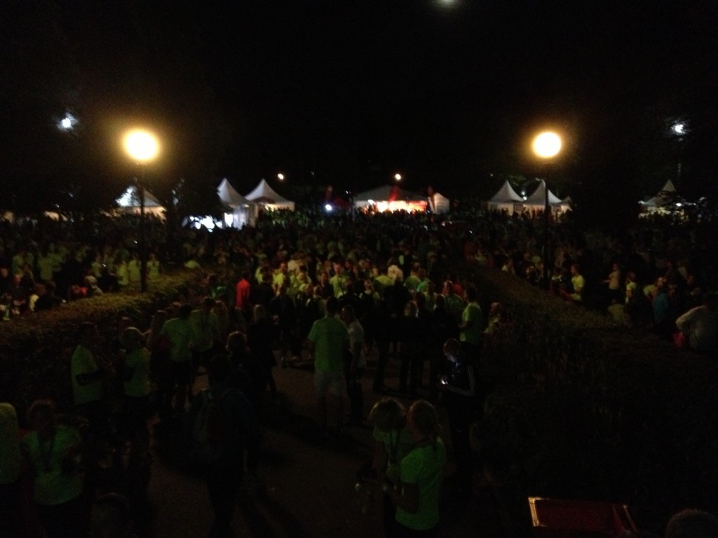 Gick sakta fram och fick banan och medalj och dricka. Välbehövligt med dricka! När jag kom längre fram stod alla kollegorna och snackade, jag kom sist, skit också. Är i och för sig äldst så så farligt är det ju inte! Alla var glad och uppspelta, nästa lite berusade kändes det som …